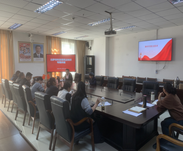 为深入学习贯彻习近平法治思想,持续强化全局干部职工的宪法意识和法治素养,推动法治机关建设走深走实,近日,市科技局邀请局法律顾问袁溥钰律师开展宪法知识专题讲座,全局干部职工参加学习。