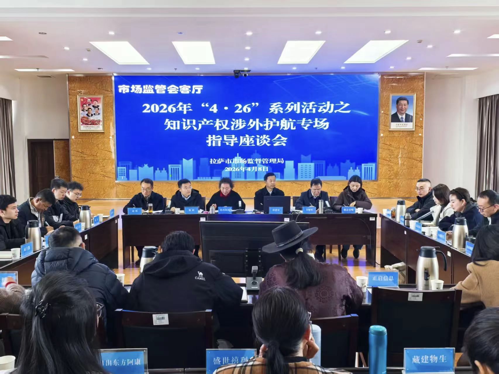 为强化涉外知识产权保护、护航企业“出海”发展,近日,拉萨市科技局作为核心参与单位之一,参加拉萨市市场监管局主办的2026年“4.26”系列活动之知识产权涉外护航专场会。国家知识产权局专家,自治区市场监管局知识产权处、市商务局、八廓海关相关负责人及20家涉外企业代表参会。